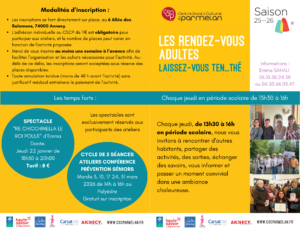 Pour plus d’informations : Emma SAHALI – 04.50.66.03.47 ou famille@cscparmelan.fr