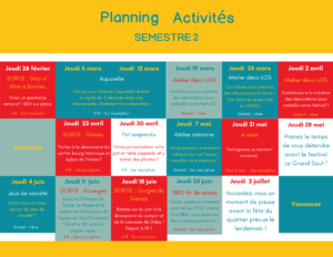 Conditions : Adhésion familiale de 11€ – Inscription et prix selon l’activité
